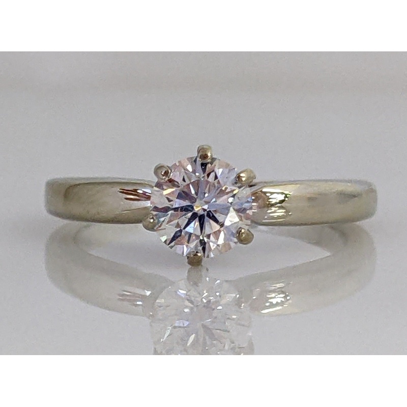 14K WHITE .65 CARAT TOTAL SI2 H DIAMOND ROUND ESTATE SOLTAIRE RING 3.4 GRAMS