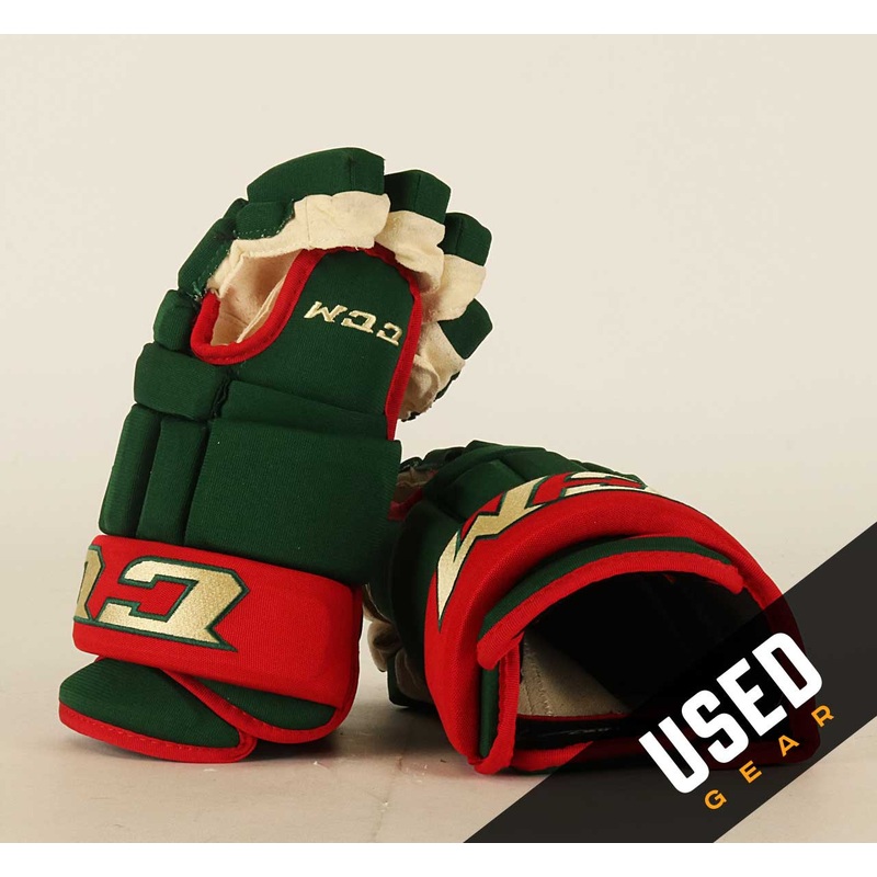 These gloves have been lightly used. The palms may show minor wear, and the gloves may have small markings. Brand CCM SKU: UPC: Team Minnesota Wild Player Nick Seeler Primary Color Green Model HG97 Cuff Yes Size 15" Width Standard Age Group Senior
