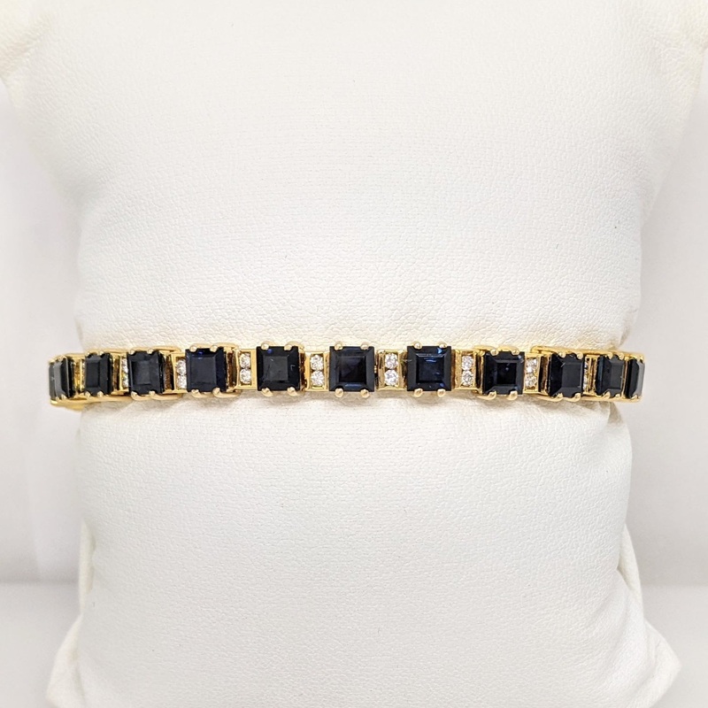 18K SAPPHIRE PRINCESS CUT 4X4 (25) WITH .50 DIAMOND TOTAL WEIGHT ESTATE BRACELET 22.3 GRAMS
