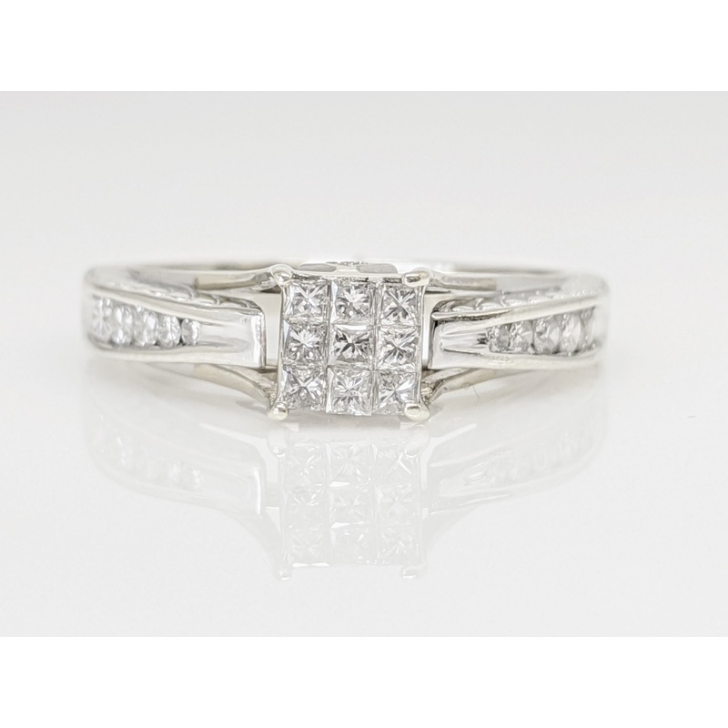 18K WHITE .48 CARAT TOTAL WEIGHT I1 G-H DIAMOND PRINCESS CUT (9) ROUND (10) ESTATE RING 2.8G