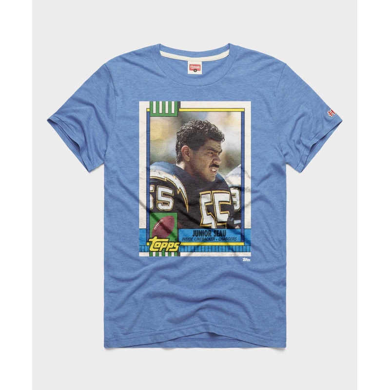 Ferocious tackles and rookie year energy defined Junior Seaus 1990 season with the San Diego Chargers, and made him the heart of a defensive line for the ages.Our ultra-comfortable, game-day ready Topps collectibles feature vintage typography, classic card