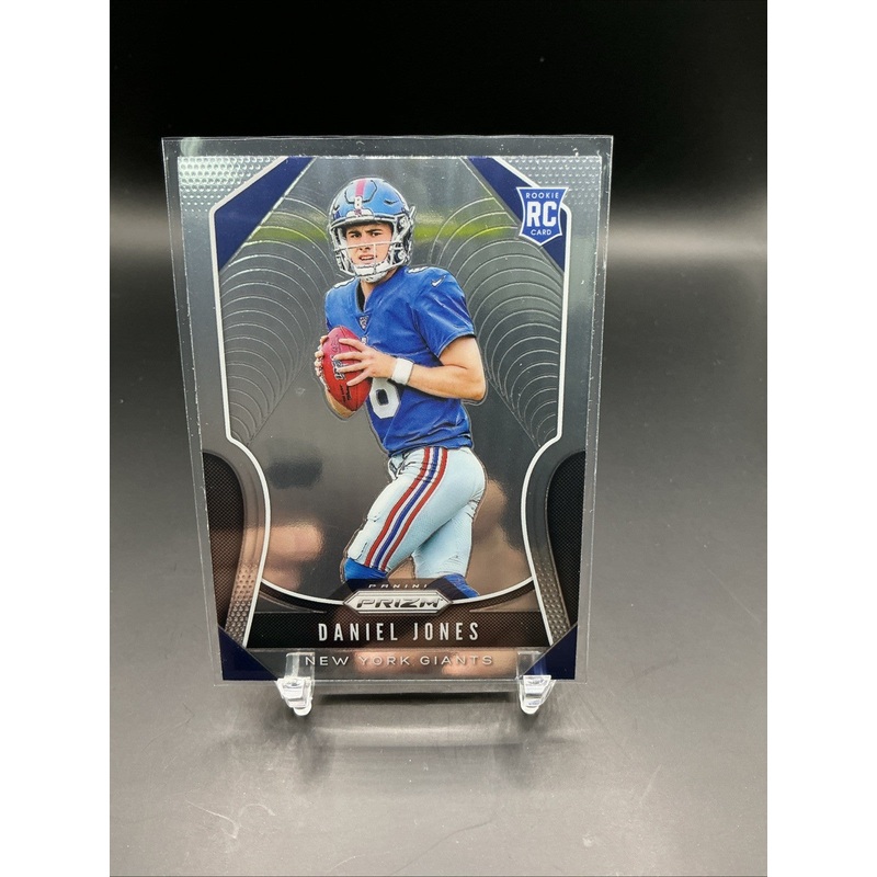 The product is a 2019 Panini Prizm trading card featuring rookie player Daniel Jones from the New York Giants. Manufactured by Panini, this card is part of the 2019 Prizm set and is in English language. As a sports trading card, it is a collectible item so