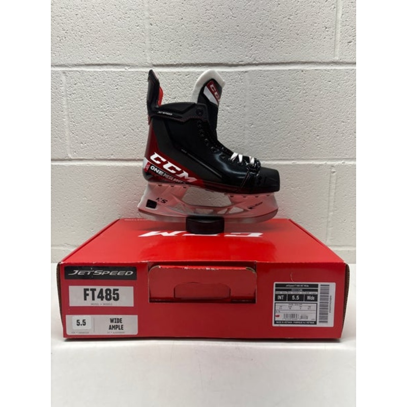 SpecificationsCategoryHockey > SkatesBrandCCMModelJetSpeed FT485Skate Size Intermediate - 5.5Skate Width E&W (Wide)Condition NewRelease Year 2021Age Group IntermediateQuantity1 available|||Seller DescriptionNew!! CCM FT485 Skates Size 5.5 Wide Width