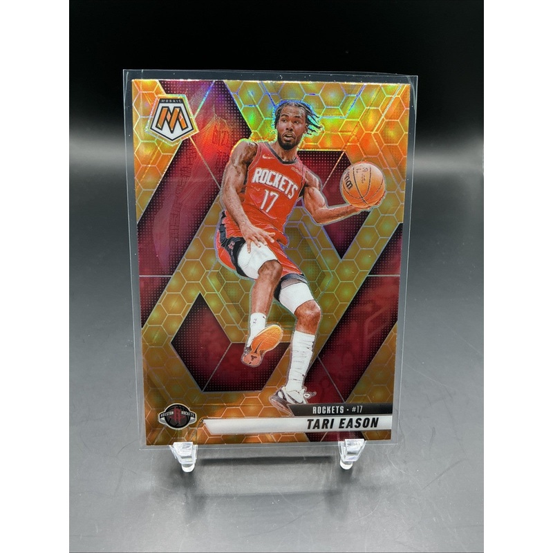 The product is a 2024-25 Panini Mosaic Tari Eason Honeycomb SP trading card featuring the Houston Rockets player in the National Basketball Association (NBA). This sought-after card is considered a case hit due to its unique design and limited availability