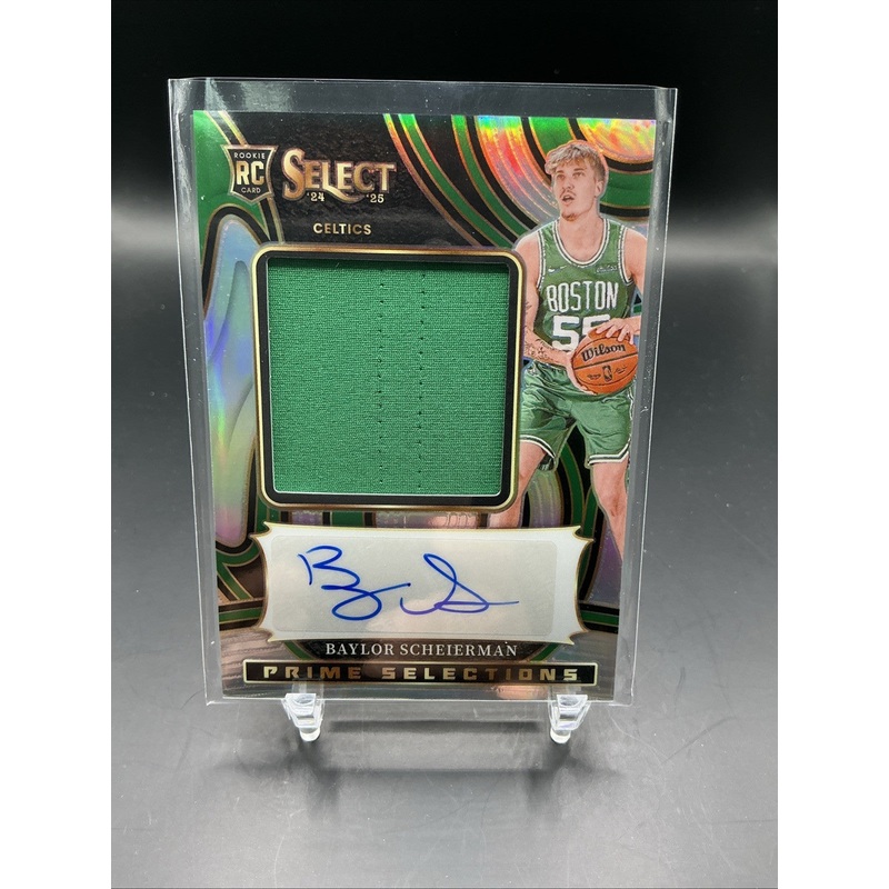 The 2024-25 Panini Select Baylor Scheierman Prime Selections Auto /99 is a highly coveted basketball trading card featuring an autograph from the rookie player Baylor Scheierman. Manufactured by Panini, this limited edition card is part of the Signatures parallel/variety set and is numbered 120-17 in the Panini Select series. With only 99 copies produced, this collectible item is a must-have for fans of the Boston Celtics and basketball trading card enthusiasts alike.