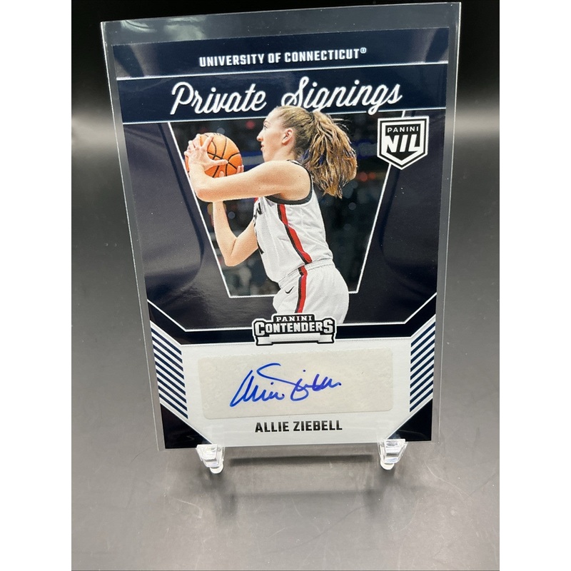 The 2024-25 Panini UConn NIL - Private Signings #AZ Allie Ziebell Rookie Auto is a highly sought-after sports trading card featuring an autograph from basketball player Allie Ziebell. Manufactured by Panini, this original card is part of the NCAA league an