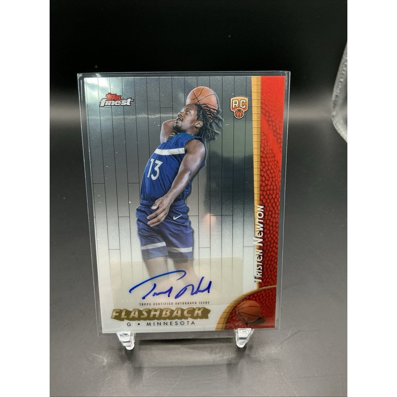 The 2024 Topps Finest Basketball #FBA-TN Flashback Autograph TRISTEN NEWTON [RC] trading card is a highly sought after collectible in the sports trading card market. This autographed card features Tristen Newton’s signature on a label or sticker, adding to its value and authenticity. Part of the Flashback Autograph insert set, this card is a rookie card for the Minnesota Timberwolves player, making it a valuable addition to any basketball card collection. With the official authentication from Topps, this card is a must-have for fans and collectors alike.