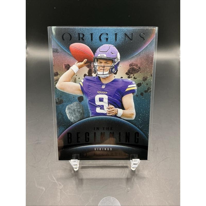 The 2025 Panini Origins Football JJ McCarthy In The Beginning SSP Case Hit trading card features the talented athlete from the Minnesota Vikings in the National Football League (NFL). This original card is made of card stock with a standard size and a thic