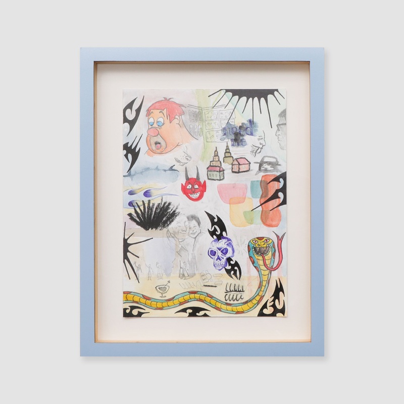 Mike Lottie Gigliottis artworks. Frames by Josh Pall.While Lotties practice has touched on painting, pottery, and watercolour, this exhibition returns to his roots, black ink pen on paper."Growing up, I was lucky to have parents who at one time owned a chi