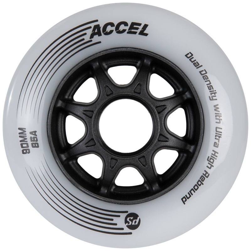 ACCEL wheels are the new dual density training wheels for racing. Using the Ultra High Rebound (UHR) in 85A those wheels will give you a nice grip and a great flex to train at high speed.