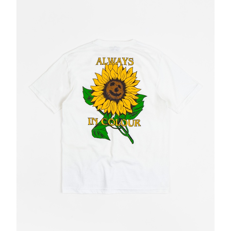 Always in Colour Sunflower T-Shirt in White. Part of the brands Summer 22 collection and tailored to a regular fitting, this colour block Always in Colour t-shirt is made from 100% cotton. Featuring a rib knit crew collar and a straight cut hemline, this white Always in Colour t-shirt is finished with printed Always in Colour left chest branding with a large sunflower themed graphic on the reverse.