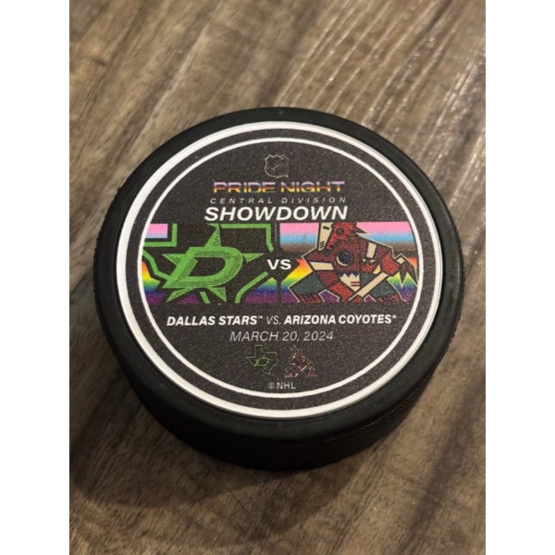 Arizona Coyotes vs Dallas Stars Pride Night NHL Hockey Puck 3/20/2024