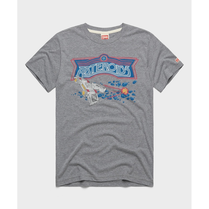 An Atari classic from the golden age of arcade games: Asteroids. Released in 1979, Asteroids quickly became one of the most popular releases of its time and influenced generations of arcade imitators for years to come. Snag our super-soft tee, and watch ou