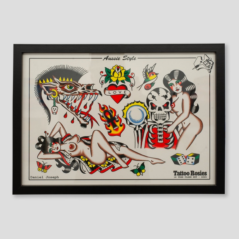 Celebrating a decade of tattooing in Sydney. A multidisciplinary art show featuring work from the whole team with pieces from the past, present, and in between.Title:Aussie style"Medium: Framed 1/1Shipping is available for artworks but will be arranged sep