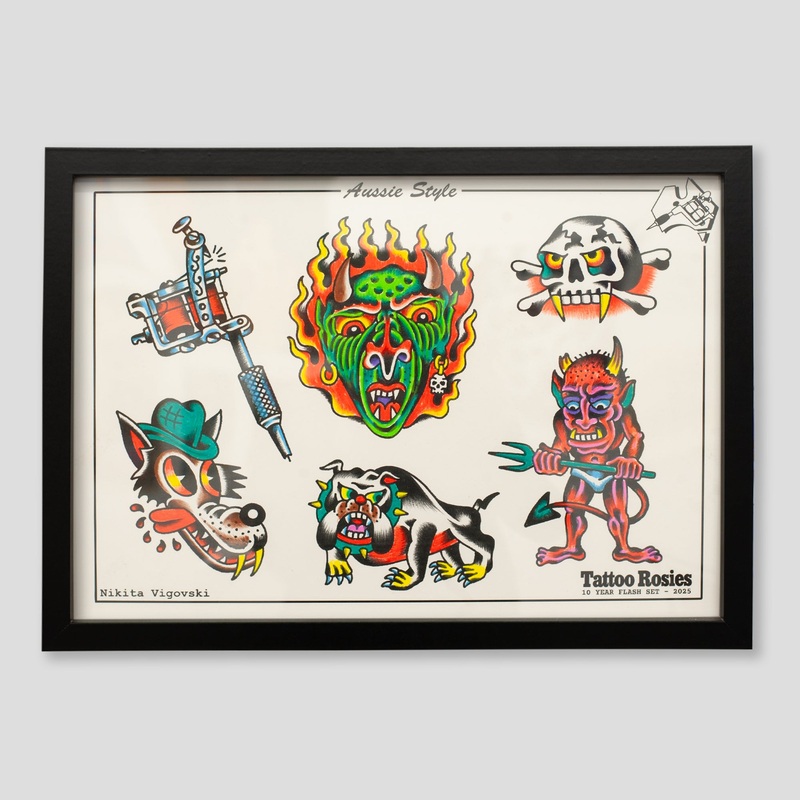 Celebrating a decade of tattooing in Sydney. A multidisciplinary art show featuring work from the whole team with pieces from the past, present, and in between.Title:Aussie style"Medium: Framed 1/1Shipping is available for artworks but will be arranged sep
