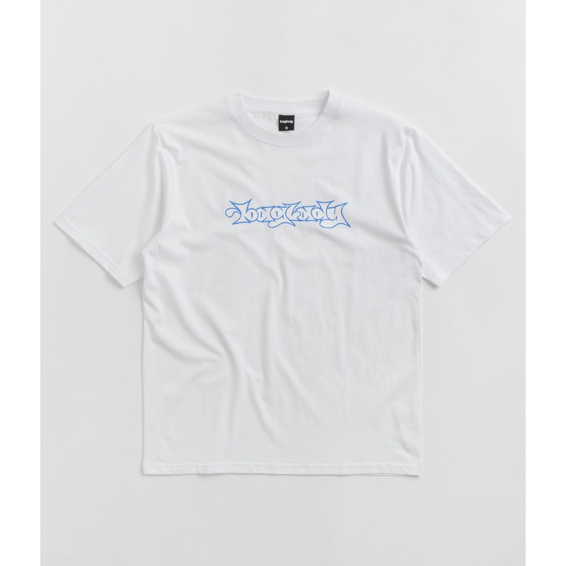 Baglady Bootleg Throw Up Logo T-Shirt in White. Part of the brands latest release, this boxy fitting Baglady t-shirt is made from 100% cotton. Featuring a classic crew collar and a reinforced hem, this white Baglady t-shirt is finished with a printed centre chest graphic.