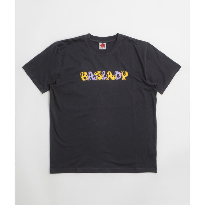 Baglady Overthrow T-Shirt in Off Black. Made from 100% cotton, this boxy fitting Baglady t-shirt is designed with a classic crew collar and a straight hem. Finished in washed black with a printed centre chest graphic.