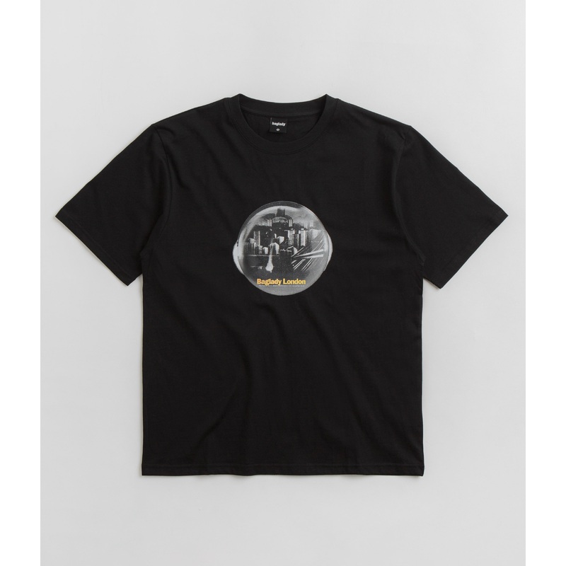 Baglady Survive London T-Shirt in Black. Made from 100% cotton, this boxy fitting Baglady t-shirt arrives as part of the brands latest release. Featuring a flexible rib knit collar and a straight cut hem, this black Baglady t-shirt is finished with a screen printed centre chest graphic.