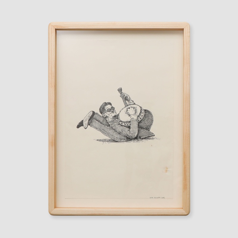 Mike Lottie Gigliottis artworks. Frames by Josh Pall.While Lotties practice has touched on painting, pottery, and watercolour, this exhibition returns to his roots, black ink pen on paper."Growing up, I was lucky to have parents who at one time owned a chi