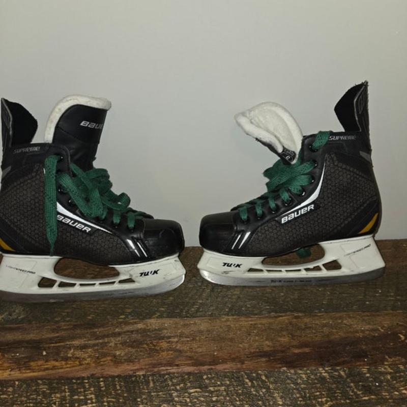 SpecificationsCategoryHockey > SkatesBrandBauerModelSupremeSkate Size Youth - 6Condition UsedAge Group YouthQuantity1 available|||Seller DescriptionBauer Supreme Youth 5 - US shoe is 6. Grest shape, like new.|||About the Bauer SupremePerfect skates for: