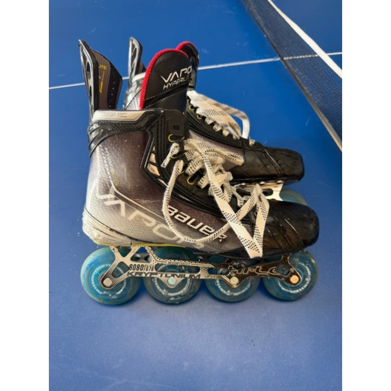 SpecificationsCategoryHockey > Inline, Roller & Street > Inline SkatesBrandBauerModelVapor AgilitySkate Width E&W (Wide)Age Group SeniorSkate Size 8.0Condition UsedQuantity1 available|||Seller DescriptionBauer Vapor Hyperlites with Krypto cha