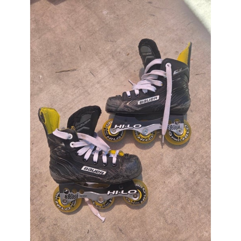 SpecificationsCategoryHockey > Inline, Roller & Street > Inline SkatesBrandBauerModelRSSkate Size 12.0Age Group YouthSkate Width D&R (Regular)Condition UsedQuantity1 available|||Seller DescriptionExcellent condition with custom wheels and Swi