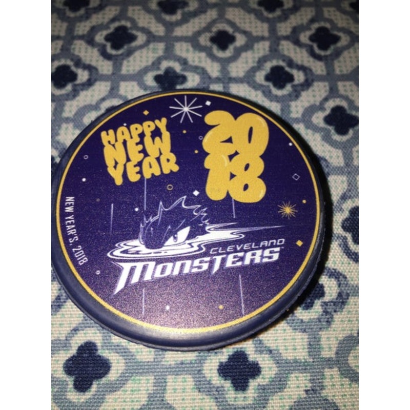 BLUE 2018 HAPPY NEW YEAR CLEVELAND MONSTERS A.H.L . HOCKEY PUCK –