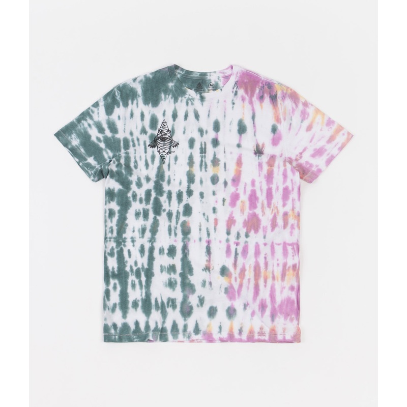 Brixton BB Bohemian T-Shirt in Green and Red. Designed in collaboration with NYC-based artist BB Bastidas, this tie-dye styled short sleeve tee is styled to a slightly tailored fitting to help boost its overall sense of skate and street-led appeal. Featuring a straight-cut hemline, neatly trimmed seams and a flexible design-matched elasticated collar, this split-tone dyed tee is signed off with hand-painted original Bohemian Eye artwork printed across the right-chest for a creative and characterful sign off.