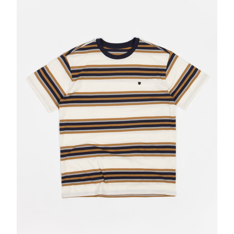 Brixton Hilt Shield Knit T-Shirt – Off White / Navy / Medal Bronze