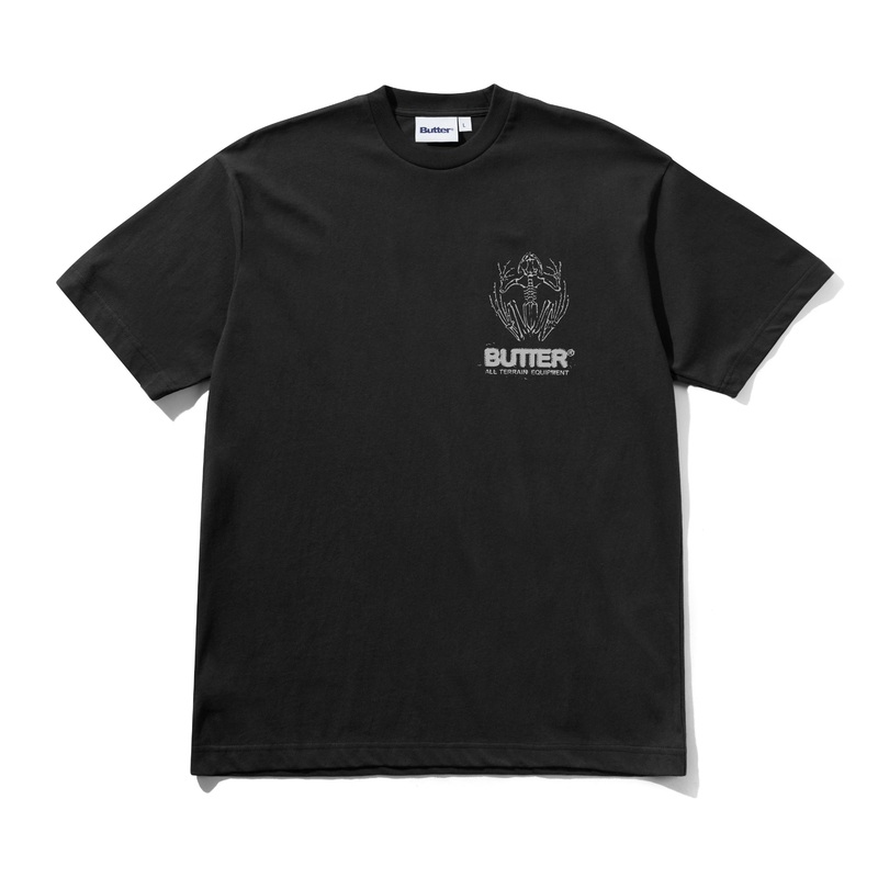 Butter Goods Fossil T-Shirt Black.6.5oz (220 gsm) 100% Cotton T-Shirt.Screen Print On Front And Back.Shop now at Preduce Skateboards.