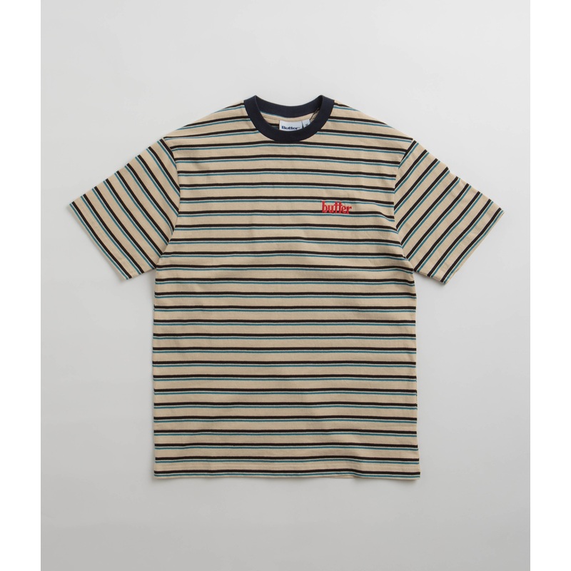 DescriptionButter Goods Gardens Stripe T-ShirtButter Goods Gardens Stripe T-Shirt in Stone. Made from 100% cotton, this Butter Goods t-shirt is designed with an all-over striped pattern. Featuring a contrasting rib knit collar and a reinforced hem, this st