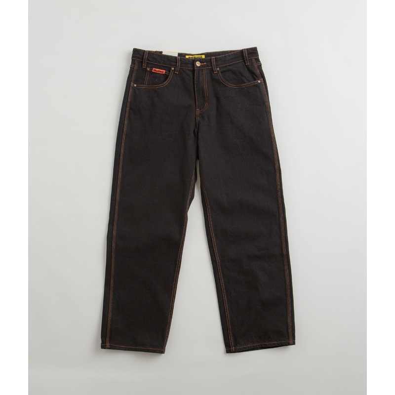 Butter Goods Relaxed Jeans in Washed Black. Featuring contrast stitching and made from 100% cotton denim with a straight leg cut, these Butter Goods jeans are tailored to a relaxed fitting. Finished in a shade of washed black with two front pockets, two rear pockets, a flag labelled coin pocket and with a woven PU belt patch.