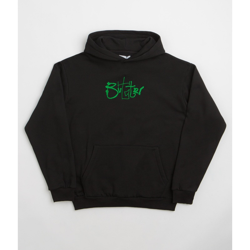 DescriptionButter Goods Scribble HoodieButter Goods Scribble Hoodie in Black. Made from a heavyweight cotton-polyester blend, this colour block Butter Goods hoodie is designed with a split panel hood. Finished in black with a kangaroo front pocket, ribbed