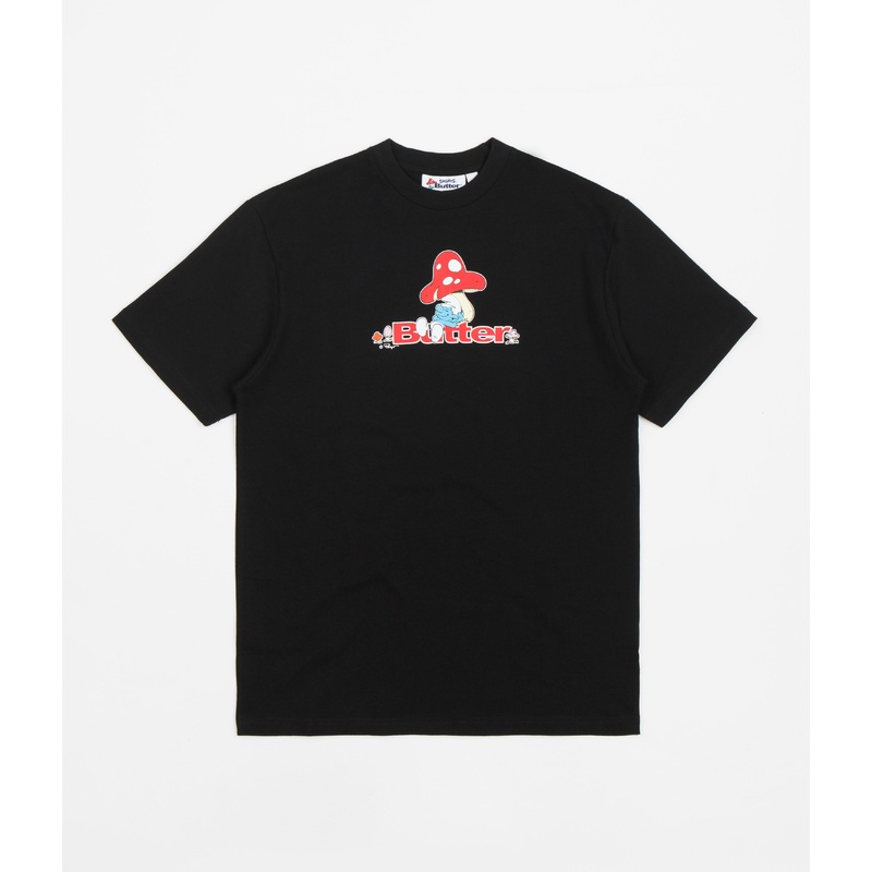 DescriptionButter Goods x The Smurfs Lazy Logo T-ShirtButter Goods x The Smurfs Lazy Logo T-Shirt in Black. Part of the brand's latest collaboration with The Smurfs, this regular fitting Butter Goods t-shirt is made from 100% cotton. Featuring a classic ri