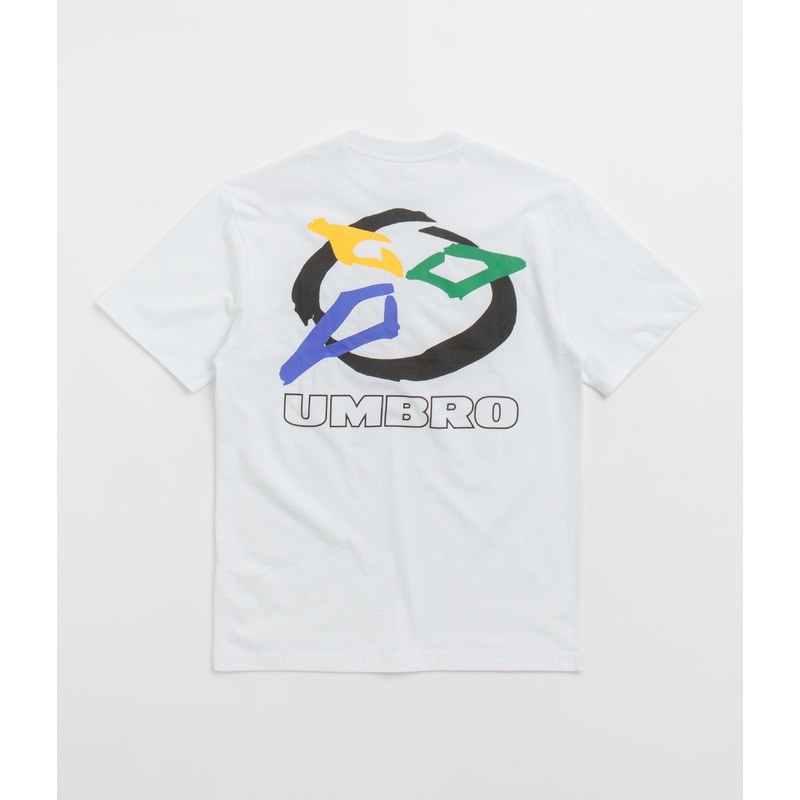 Butter Goods x Umbro Ball T-Shirt in White. Part of the brands collaboration with Umbro, this Butter Goods t-shirt is made from 100% cotton. Featuring a rib knit collar and a straight cut hem, this white Butter Goods t-shirt is finished with screen printed front and rear graphics.