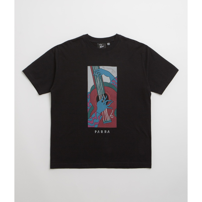 Descriptionby Parra Cheap Strings T-Shirtby Parra Cheap Strings T-Shirt in Black. Regular fitting and part of the brands latest release, this by Parra t-shirt is made from 100% cotton. Finished in a shade of black with a rib knit collar and a straight cut