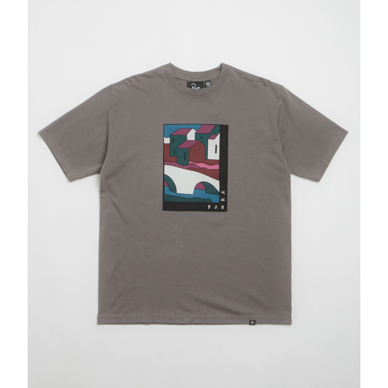 by Parra Leaving You T-Shirt in Anthracite. Regular fitting and made from 100% cotton, this block tone by Parra t-shirt is designed with a flexible rib knit collar and a straight cut hem. Finished in a shade of grey with a printed chest graphic and woven flag label branding.