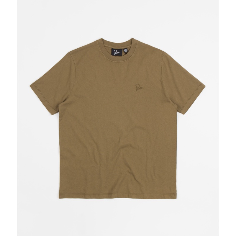 by Parra Logo T-Shirt in Camel. Arriving as part of the brands latest release, this 100% cotton by Parra t-shirt is tailored to a regular fitting with a casual crew collar and reinforced hem. Featuring tonal stitched seams, this khaki coloured by Parra t-shirt is finished with embroidered Parra left chest branding.