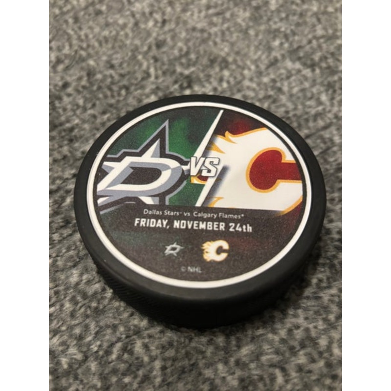Calgary Flames vs Dallas Stars NHL Match Up Hockey Puck 11/24/2024