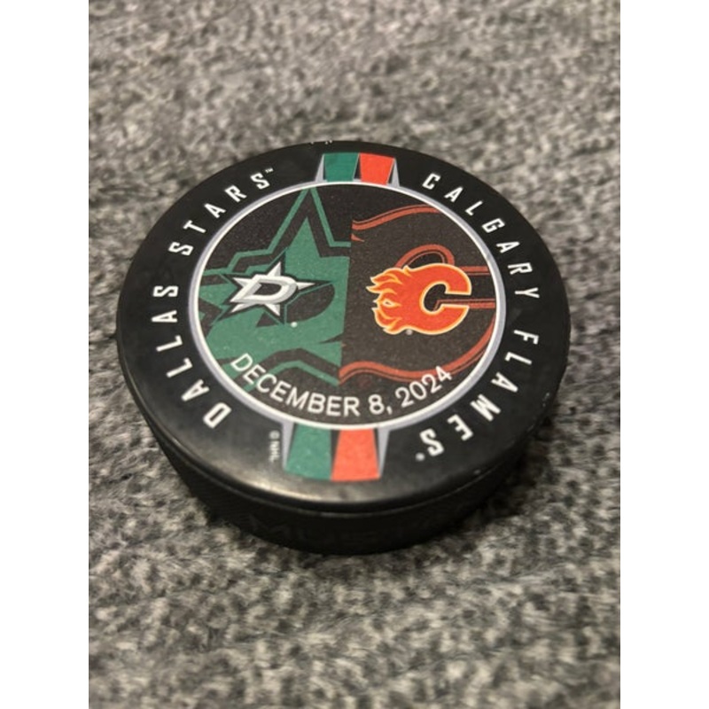 Calgary Flames vs Dallas Stars NHL Match Up Hockey Puck 12/8/2024