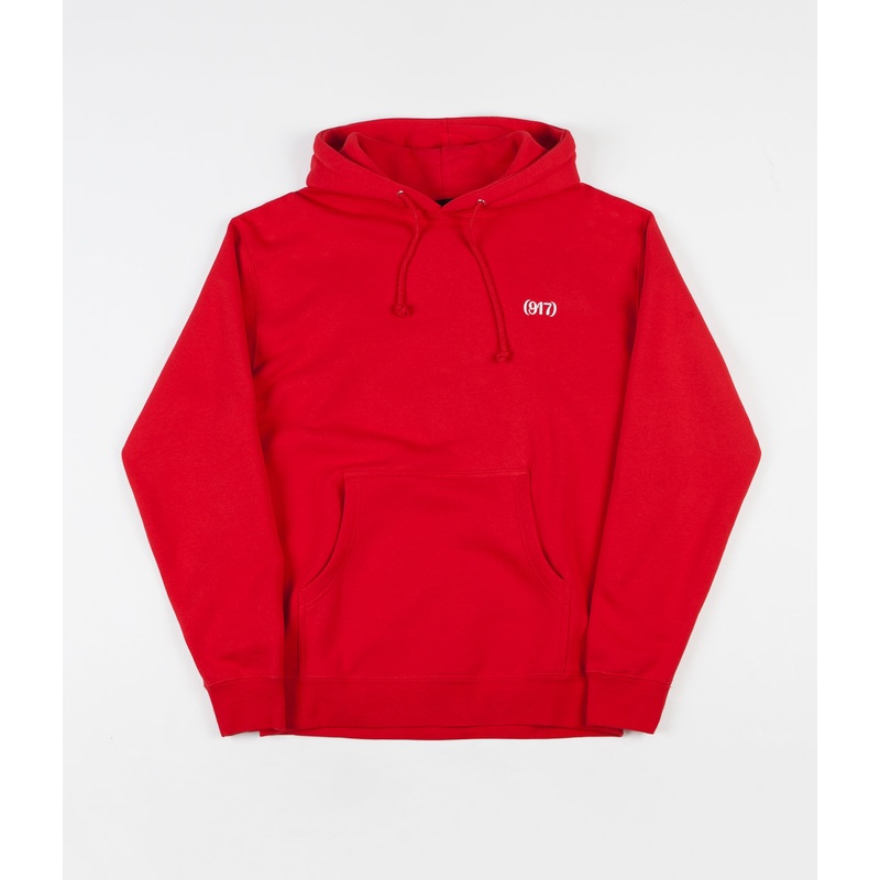 The Call Me 917 Area Code Hoodie adds a hint of colour to SS19, its polycotton blend ensures soft comfort without impacting on durability. The perfect transeasonal piece, the regular fit ensures layering options for the autumn and winter seasons or room for both ventilation and movement during the coming warmer months. The addition of ribbing running across the sleeves and waist ensures retention to the silhouette while skating, with drawstrings enhancing structure to the hood. Final detailing includes a kangaroo pouch pocket for storing your day-to-day essentials. The body has been dressed in red, with a contrasting (917) logo embroidered in white on the left chest.