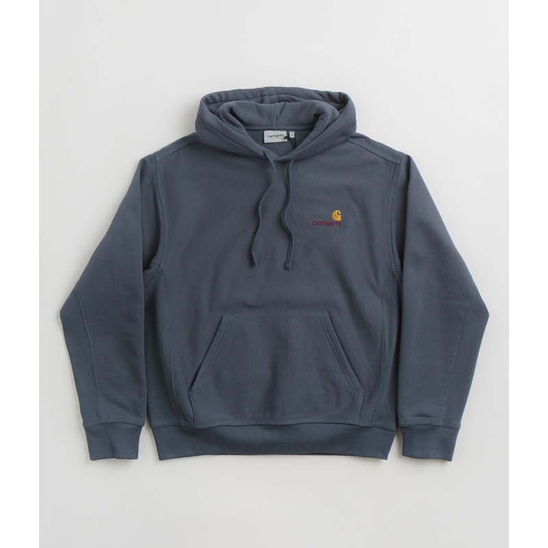 DescriptionCarhartt American Script HoodieCarhartt American Script Hoodie in Ore. Tailored to a loose fitting from a cotton-polyester blend, this brush lined Carhartt hoodie is styled with dropped shoulders, a drawstring hood and rib knit cuffs. Featuring