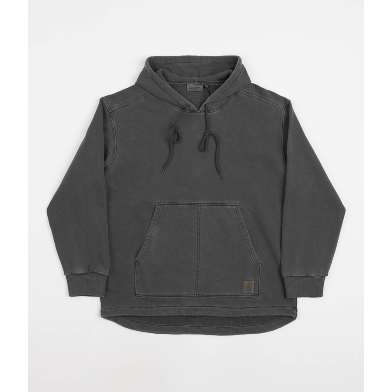 Carhartt Arling Hoodie in Black. Made from 100% cotton sweat and garment dyed, this colour block Carhartt hoodie is tailored to a loose fitting with an unbrushed inner lining. Featuring a split panel drawcord hood, dropped shoulders, cuffed sleeves and a drawstring adjustable hem, this black Carhartt hoodie also features a split kangaroo pocket across the waist. Finished with exposed stitching and with a woven Carhartt flag label sewn above the hem.