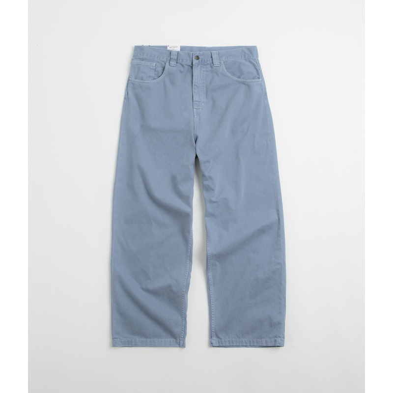 DescriptionCarhartt Brandon PantsCarhartt Brandon Pants in Icy Water. Loose fitting and cut with a straight leg, these Carhartt pants are made from 100% cotton 'Smith' denim. Featuring a belt loop waistband, a zippered fly and four pockets, these light blu