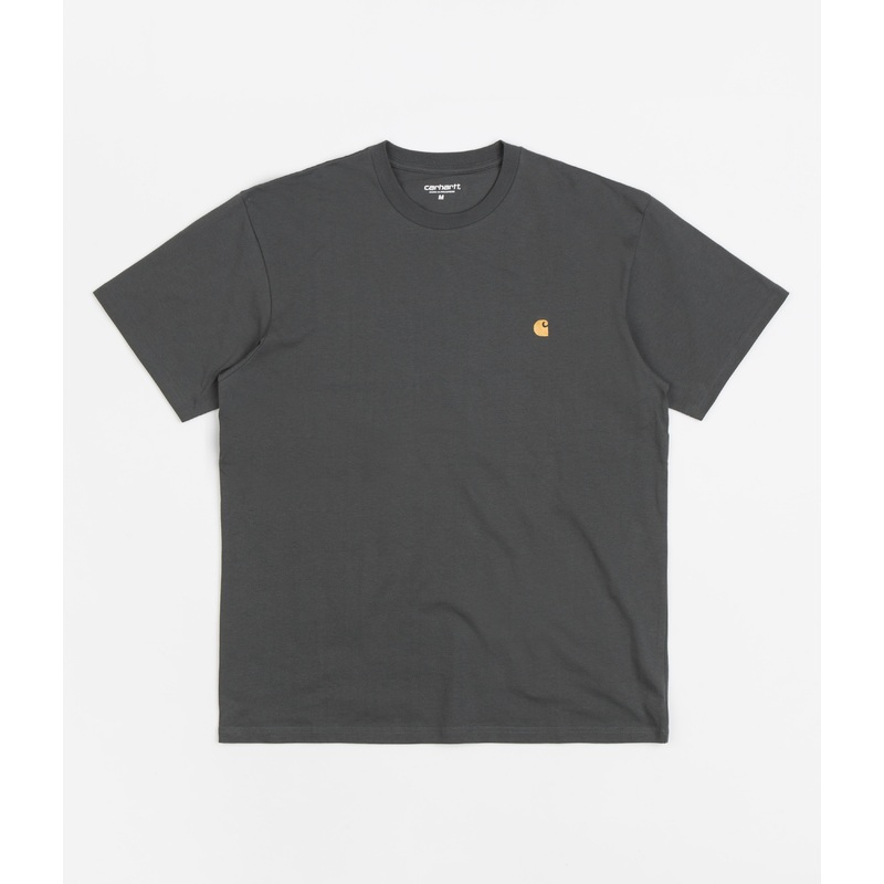 DescriptionCarhartt Chase T-ShirtCarhartt Chase T-Shirt in Jura and Gold. Loose fitting and made from 100% cotton combed single jersey, this colour block Carhartt t-shirt is styled with a rib knit collar and a straight cut hem. Featuring a midweight 235gsm