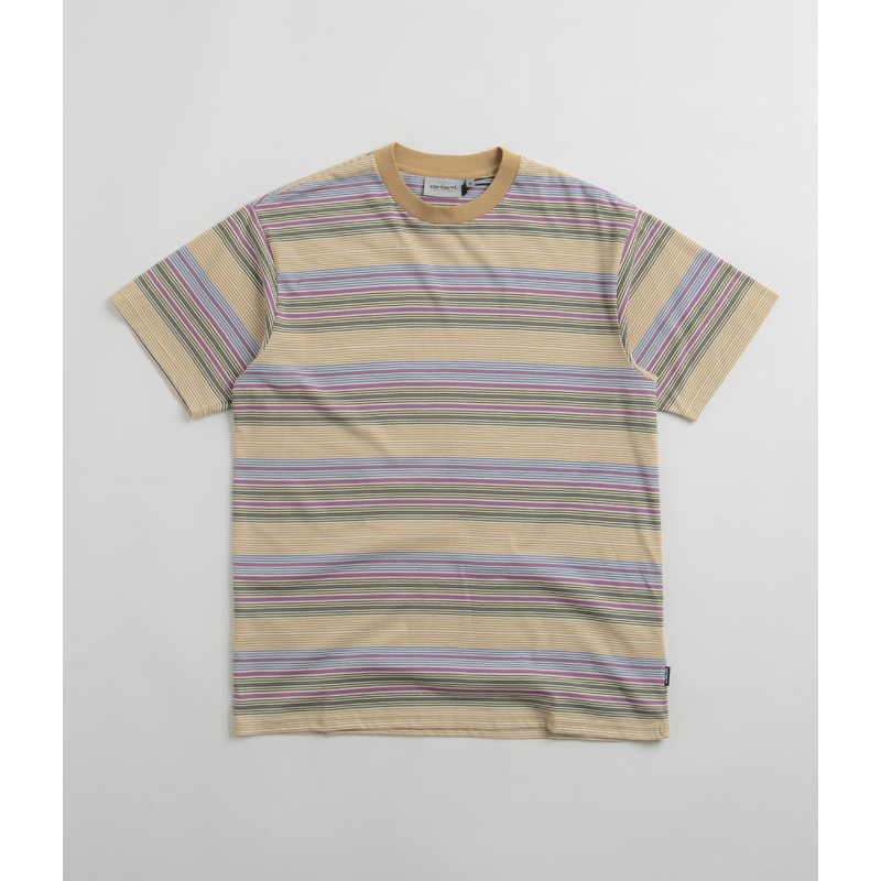 DescriptionCarhartt Coby T-ShirtCarhartt Coby T-Shirt in Bourbon. Loose fitting and made from 100% cotton, this Carhartt t-shirt arrives as part of the brands latest collection. Featuring a rib knit collar and yarn dyed stripes, this khaki stripe Carhartt