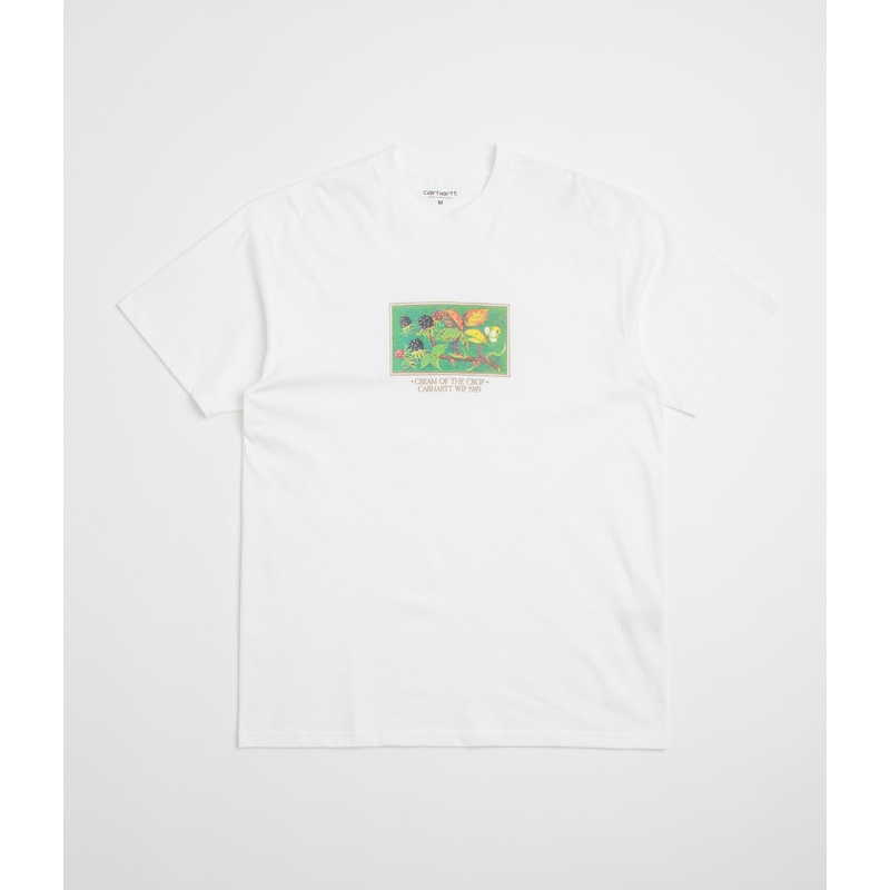 Carhartt Cream Of The Crop T-Shirt in White. Made from 100% organic cotton, this block tone Carhartt t-shirt is designed with a classic crew collar. Finished in white with a straight hem and a printed centre chest graphic.