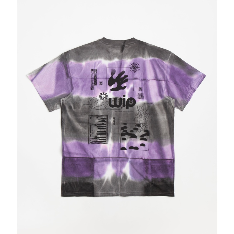 Carhartt Float T-Shirt in Multicolor and White. Designed with a unique tie-dye pattern and made from 100% organic cotton, this loose fitting Carhartt t-shirt arrives as part of the brands latest release. Featuring a single jersey fabrication with a reinforced hem and classic crew collar, this grey and purple Carhartt t-shirt is finished with screen printed front and rear graphics.