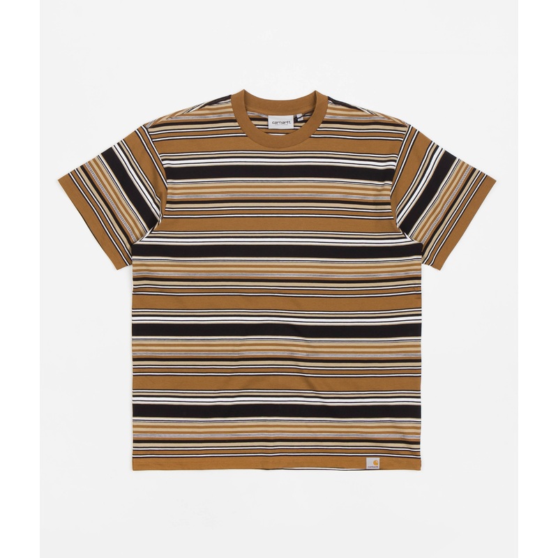 DescriptionCarhartt Lafferty T-ShirtCarhartt Lafferty T-Shirt in Lafferty Stripe and Hamilton Brown. Loose fitting and made from 100% cotton, this striped Carhartt t-shirt is styled with a yarn dyed fabrication. Featuring a block tone crew collar and a fla