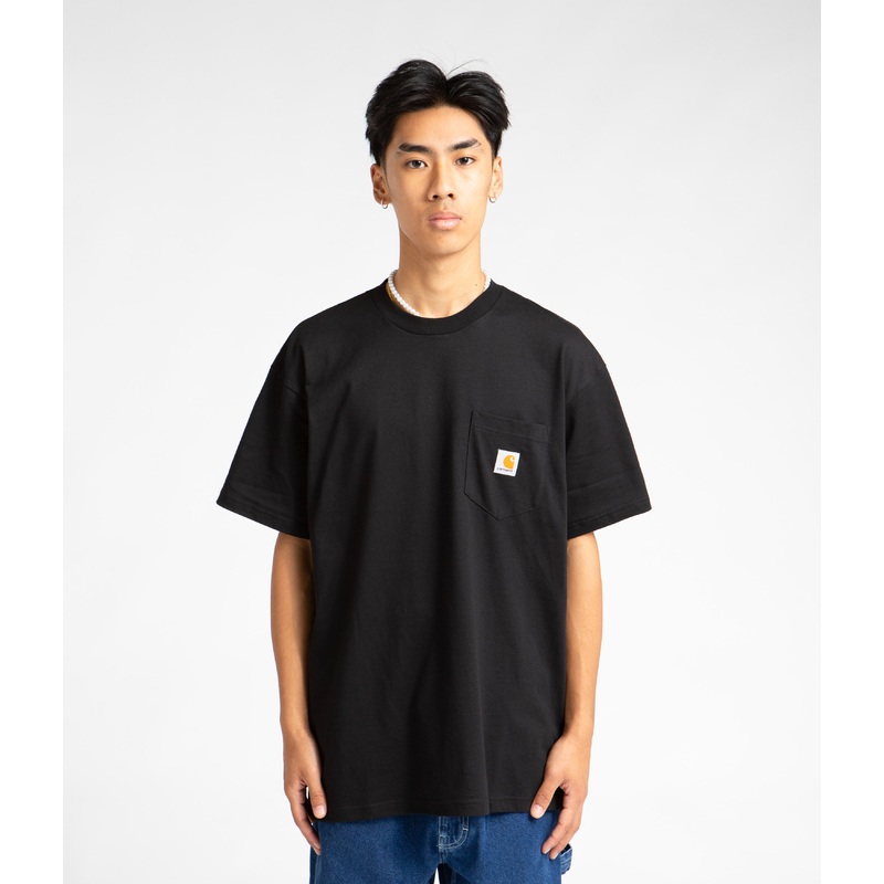 DescriptionCarhartt Local Pocket T-ShirtCarhartt Local Pocket T-Shirt in Black and Marengo. Loose fitting and made from 100% organic cotton, this block tone Carhartt t-shirt is styled with a flexible rib knit collar and a reinforced hem. Finished with a si